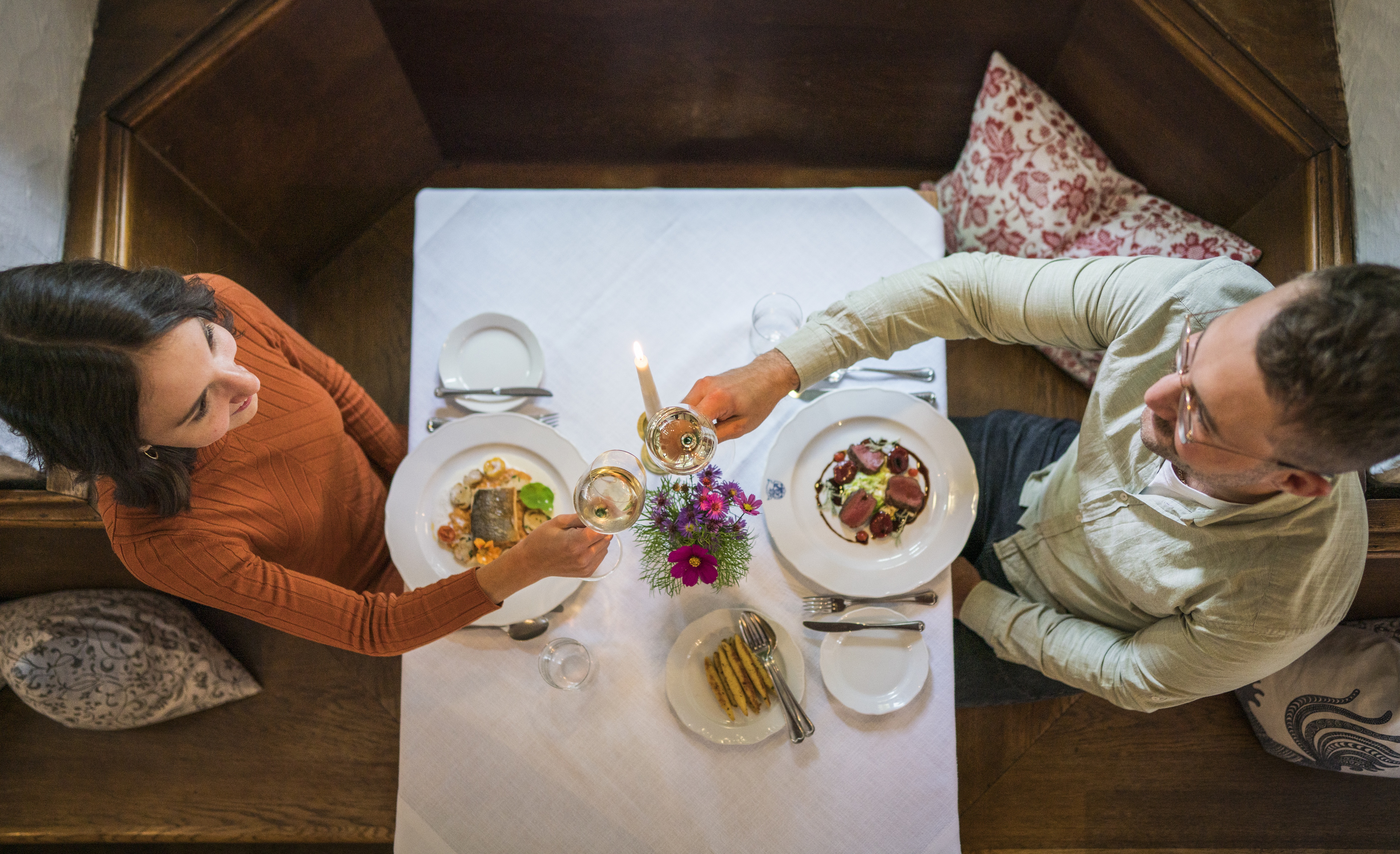 Die kulinarische Bandbreite ist hier in Bayerns Mitte besonders groß. Im Westen der Region stehen Käsespätzle hoch im Kurs, von Weißenburg bis Solnhofen werden gern „Schäufele“ und grobe Bratwürste serviert, weiter östlich dagegen Schweinshaxen und Weißwürste: Im Naturpark Altmühltal treffen fränkische, schwäbische und altbayerische Küchentraditionen aufeinander. Vor allem sind es aber die heimischen Zutaten und die handwerkliche Zubereitung, die den Gerichten ihre besondere Note verleihen. Viele Gastronomen arbeiten schon lange vertrauensvoll mit Bauernhöfen, Teichwirten, Jägern oder Brauereien aus der Gegend zusammen und zeigen dies auch auf ihren Speisekarten. Mancher Familienbetrieb vereint sogar noch Landwirtschaft, Metzgerei und Gasthof. Andernorts tragen Gerichte wie „Biberbacher Saibling“, „Medaillons vom Beilngrieser Strohschwein“ oder „Rehhaxerl mit Wild aus heimischen Wäldern“ die heimische Herkunft der Zutaten im Namen. Fine-Dining-Restaurants nutzen die kurzen Wege und persönlichen Kontakte, um die besten saisonalen Zutaten ganz frisch verarbeiten zu können. Diese werden dann kreativ verfeinert, wobei auch die internationale Küche Inspiration liefert.